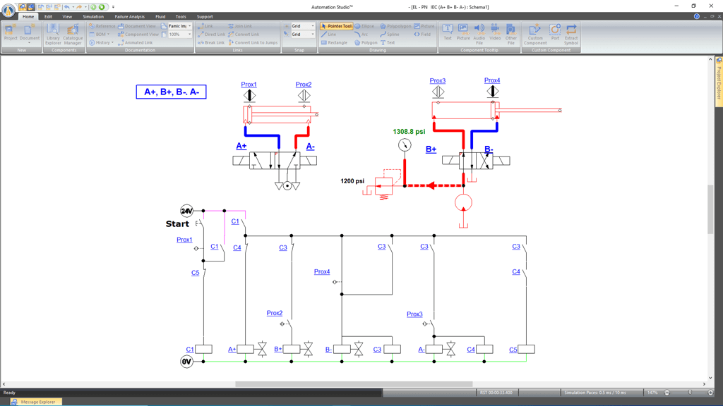Illustrated pneumatic (A+ A- B+ B- B+